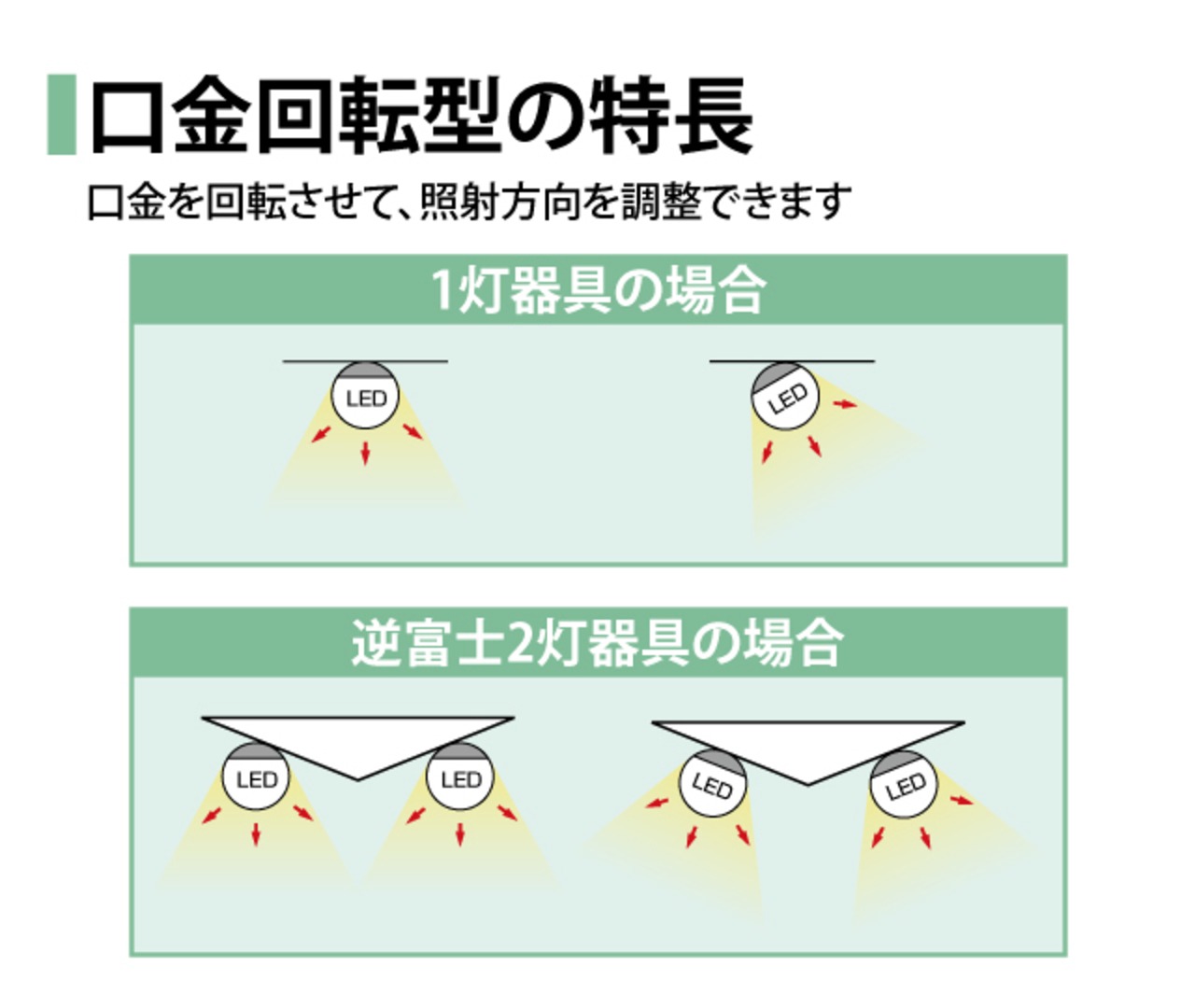 口金を回転させることで照射角度を変更可能!